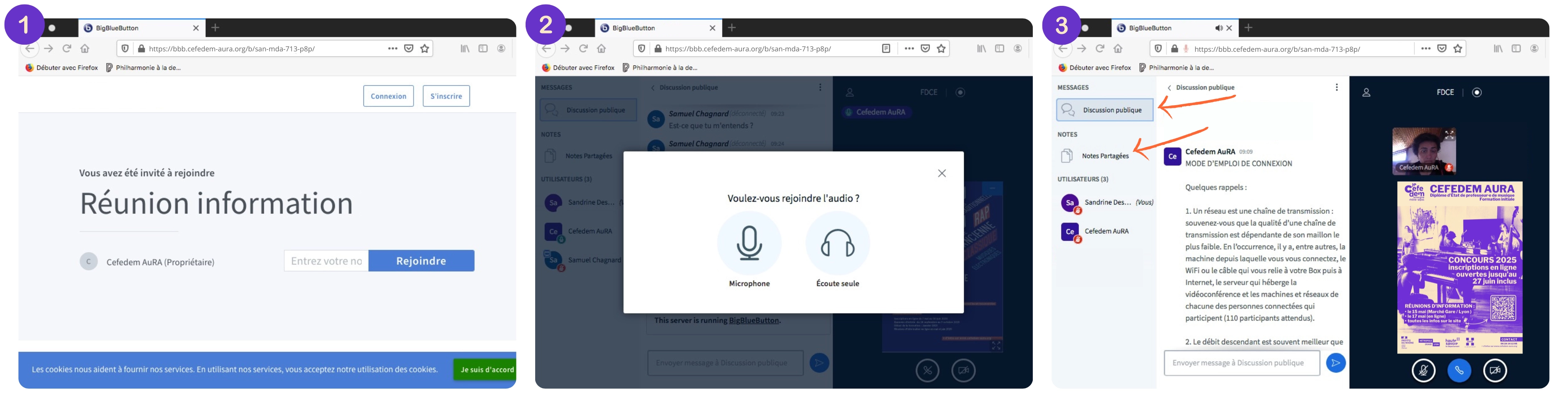 → si vous rencontrez des problèmes pour vous connecter, vous pouvez nous contacter à l'adresse suivante : sandrine.desmurs@cefedem-aura.org